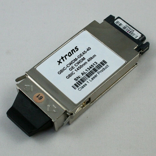 Xtransceiver is your direct source for GBIC-CWDM-GE45-40 transceiver modules. We produce and stock a large quantity of GBIC-CWDM-GE45-40 transceiver modules. All of our GBIC-CWDM-GE45-40 transceiver modules are tested in-house prior to shipping to insure that they will arrive in perfect physical and working condition. We guarantee the GBIC-CWDM-GE45-40 transceiver modules to work in your system and all of our GBIC-CWDM-GE45-40 transceiver modules come with a lifetime replacement warranty.